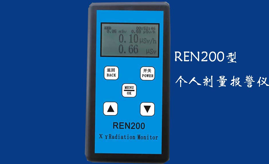 REN200A 個(gè)人輻射報(bào)警儀REN200A型X、γ輻射個(gè)人劑量當(dāng)量HP(10)監(jiān)測(cè)儀(簡(jiǎn)稱:個(gè)人劑量報(bào)警儀)內(nèi)置高靈敏度蓋格計(jì)數(shù)管為探測(cè)器,主要用來監(jiān)測(cè)各種放射性工作場(chǎng)所的X、γ以及硬β射線的輻射,具有響應(yīng)快,測(cè)量范圍寬的特點(diǎn)。能顯示工作場(chǎng)所的劑量當(dāng)量率和累積劑量,更換電池時(shí),日期及累積數(shù)據(jù)能永久保存。可選配RenRiPersonal個(gè)人劑量管理軟件,該軟件可存儲(chǔ)多個(gè)人的歷史數(shù)據(jù),能記錄日累積、月累積、年累積、輻照時(shí)長(zhǎng)、計(jì)算平均劑量率、扣除或不扣除本底輻射,且以文字和圖譜的方式展現(xiàn)數(shù)據(jù)。廣泛應(yīng)用于核電站、加速器、鋼鐵、化工、同位素應(yīng)用、工業(yè)X、γ無損探傷、放射醫(yī)療、鈷源治療、γ輻照、放射性實(shí)驗(yàn)室、核設(shè)施周圍環(huán)境監(jiān)測(cè)等領(lǐng)域中的工作人員進(jìn)行個(gè)人安全防護(hù)監(jiān)測(cè)及放射性提示。&nb